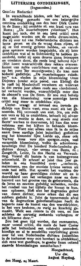 Hierboven het desbetreffende fragment uit die ingezonden brief. De hele brief is onderaan deze pagina afgedrukt. Pseudoniemen Frits Lensvelt