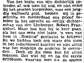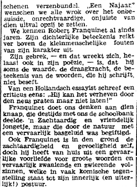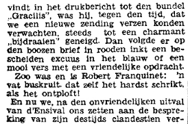 In september/oktober publiceerde Franquinet iets in de Limburgse editie van Het Parool dat voor veel beroering zorgde. Wat precies is (nog) onbekend - in bovenstaande artikel wordt eraan gerefereerd. Hij deed dit onder het pseudoniem d'Ensival. Een verkorte versie hiervan, 'd'E', gebruikte hij bij andere Paroolpublicaties.