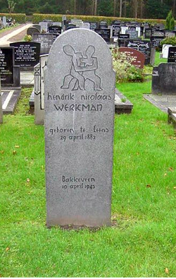 De werken van de Blauwe Schuit waren vanwege de bijzondere vormgeving en illustraties zeer gewild bij verzamelaars. Werkman was in 1944 ook de drukker en vormgever van een aantal uitgaven van de clandestiene uitgeverij In agris occupatis, die gerund werd door J.B. Charles, A. Marja en Willem Overbeek. Was dit verzetswerk? Dat clandestiene uitgaven vooral een commercieel doel dienden, blijkt uit de vaak hoge prijs die ervoor gevraagd werd, daarbij gebruikmakend van de schaarste aan boeken. " Arrestatie en moord In de laatste dagen vóór de komst van de Canadezen was de SD in Groningen bezig om alle gevangen verzetsstrijders heimelijk te liquideren, op verlaten plaatsen in Drenthe en Friesland, in groepjes van tien. Jack Kooistra: "Kunstmest- en veevoerhandelaar Harm Schurenga uit Enumatil, die plaatselijk OD-commandant was en onderduikers verzorgde, was een van de tien mannen die in de nacht van 8 op 9 april 1945 uit de cellen van het Groningse Huis van Bewaring waren gehaald om onder leiding van SD’er Robert Lehnhoff in de buurt van Bakkeveen te worden doodgeschoten. Hij wist zich echter los te wringen en toen de vrachtauto bij een scherpe bocht langzamer moest rijden, nam hij de benen. Ondanks een achtervolging en een zoektocht van anderhalf uur bleef hij uit handen van de Duitsers."