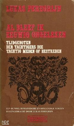 * "Lukas Peregrijn is een der vele pseudoniemen waarvan J.A. Alberdingk Thijm [1820-1889] zich heeft bediend. De projektgroep 'J.A. Alberdingk Thijm', die werkzaam is aan de universiteit te Nijmegen, verschuilt zich op haar beurt achter deze auteursnaam, bij wijze van hulde en voor het gemak. Aan de samenstelling van deze bundel hebben meegewerkt: Cor Hoppenbrouwers, René Joppen, Gerrit-Jan Kleinrensink, Frits Litmaath, Nop Maas, Maryl van Oudheusden-Cluitmans, Karel Reijnders, Marijke Stapert-Eggen, Hans Vos, Fons Vullings."